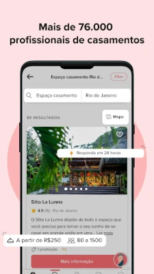 U srcu aplikacije Casamentos.com.br nalazi se sveobuhvatan imenik sa hiljadama proverenih profesionalaca – od izvanrednih lokacija za proslave, preko talentovanih fotografa i cvećara, do vrhunskih ketering službi i di-džejeva. Pronađite savršene dobavljače prilagođene vašem stilu i budžetu, a zatim istražite iskrena iskustva i inspiraciju od hiljada stvarnih parova. Priključite se aktivnoj zajednici nevesta i mladoženja, razmenite savete i pronađite podršku dok delite svoje putovanje ka oltaru.