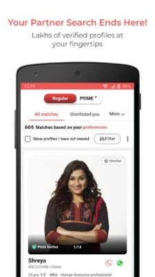Za one koji žele dodatne prednosti, KammaMatrimony Premium članstvo otvara vrata direktnijoj komunikaciji. Omogućava vam da pozivate i razgovarate sa profilima koji vam se dopadaju putem sigurne funkcije ćaskanja, kao i da šaljete personalizovane poruke. Pristup KammaMatrimony "Prime" pruža dodatnu sigurnost uz profile verifikovane državnim ispravama. Imaćete uvid u kompletne informacije profila, uključujući obrazovne institucije, kompanije i horoskop. Kao premium član, dobićete i istaknuti status, što znači bolju vidljivost i veću šansu za pronalaženje savršenog para. KammaMatrimony je deo Matrimony.com Grupe, pionira onlajn spajanja u Indiji pre 21 godinu i najpouzdanijeg brenda za spajanje, što garantuje kvalitet i poverenje.