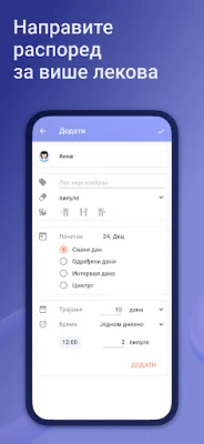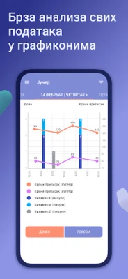 Zaboravite na brige i konstantno proveravanje satnice. Sa Mr. Pillsterom, jednostavno unosite dozu i vreme za vaše medikamente, a aplikacija preuzima sve ostalo. Ne samo da ćete dobijati pravovremene podsetnike za svaki unos, već ćete imati i jasan pregled propuštenih doza, sa mogućnošću odlaganja terapije po potrebi. Aplikacija se prilagođava vašem ritmu, automatski izračunavajući vreme unosa na osnovu dnevne učestalosti, pa čak i precizno zakazujući ciklične terapije poput kontraceptivnih pilula. Osim toga, Mr. Pillster vam omogućava da pažljivo pratite i beležite ključne medicinske parametre, uključujući temperaturu, krvni pritisak, puls, nivo šećera, težinu, raspoloženje, unete i potrošene kalorije, nivo bola i broj pređenih koraka. Uspostavite planirana merenja ili unosite pojedinačne podatke kako biste imali sveobuhvatan uvid u reakcije vašeg tela i interakciju sa terapijom.