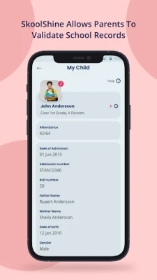 Roditelji dobijaju neuporediv uvid u obrazovanje svoje dece, uz mogućnost praćenja školskih zadataka, rezultata ispita i predstojećih rasporeda. Redovna obaveštenja u realnom vremenu o školskim objavama, događajima i hitnim porukama drže ih uvek informisanim, dok podsetnici za plaćanje školarine pomažu u izbegavanju kašnjenja. Praćenje prisustva i direktna komunikacija sa nastavnicima čine rešavanje briga jednostavnijim nego ikada. SkoolShine takođe premošćuje često zanemaren jaz povezujući institucije sa njihovim bivšim učenicima, roditeljima i osobljem kroz funkciju Alumni Connect, negujući dugoročne veze i zajednicu. Pristup školskom kalendaru i rasporedu časova olakšava planiranje, a sve informacije o detetu zaštićene su sigurnim pristupnim podacima, obezbeđujući privatnost i bezbednost. Doživite snagu besprekorne komunikacije i pojačane uključenosti u obrazovanje vašeg deteta uz SkoolShine.